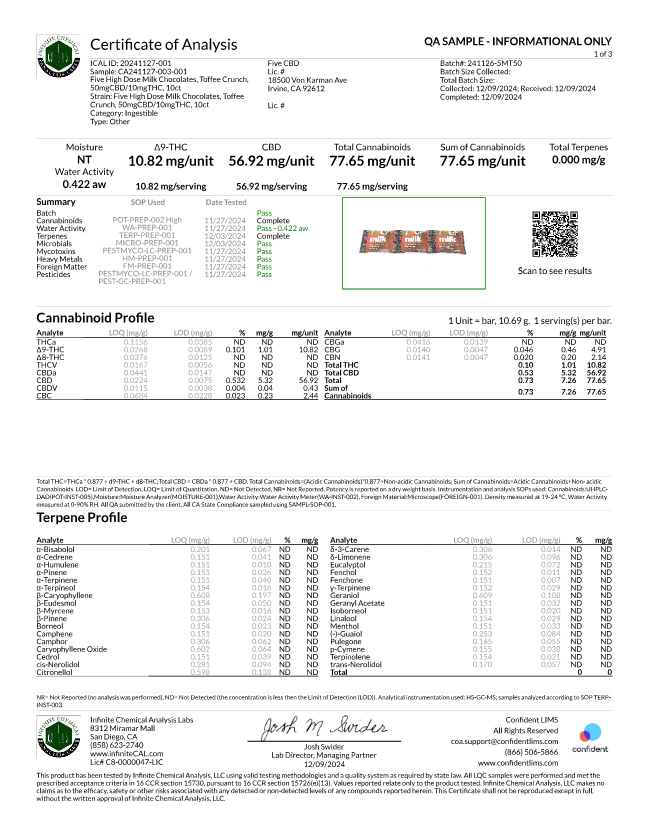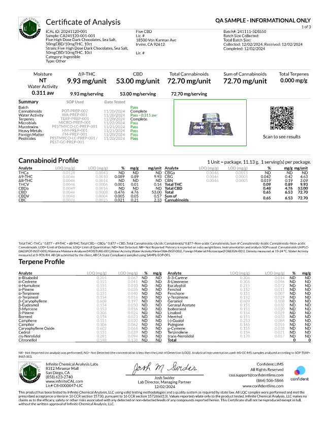 FIVE • High-Dose Artisan Choclate Lab Results